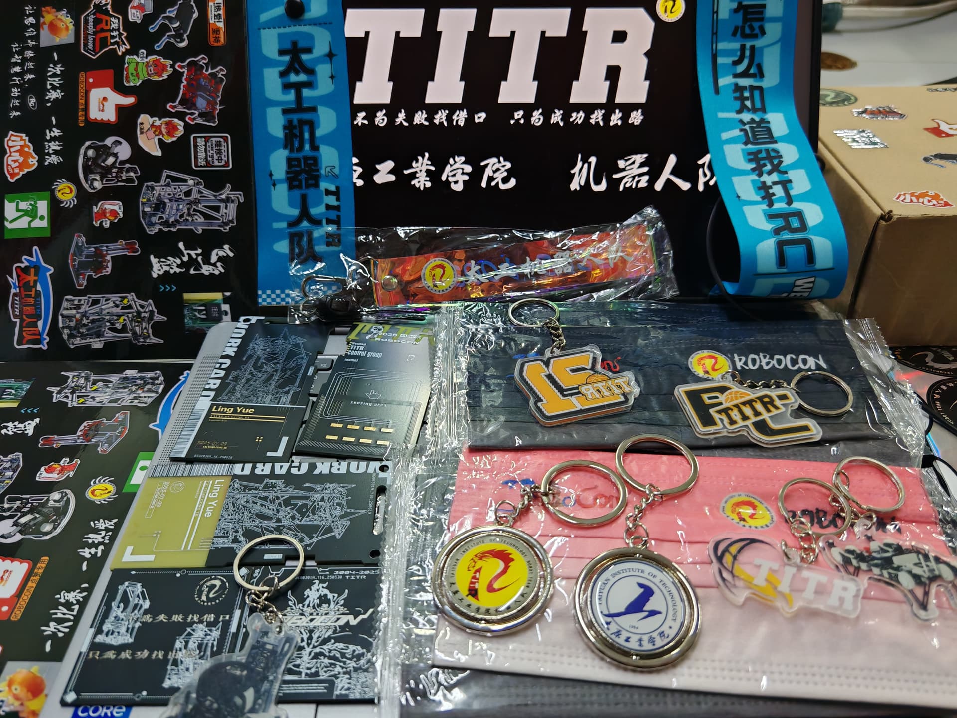 贴纸焊满机甲梗,挂绳自带“打RC”暗号,连口罩都印着ROBOCON标识——TITR人的日常,就是把战队魂焊在生活的每一处!