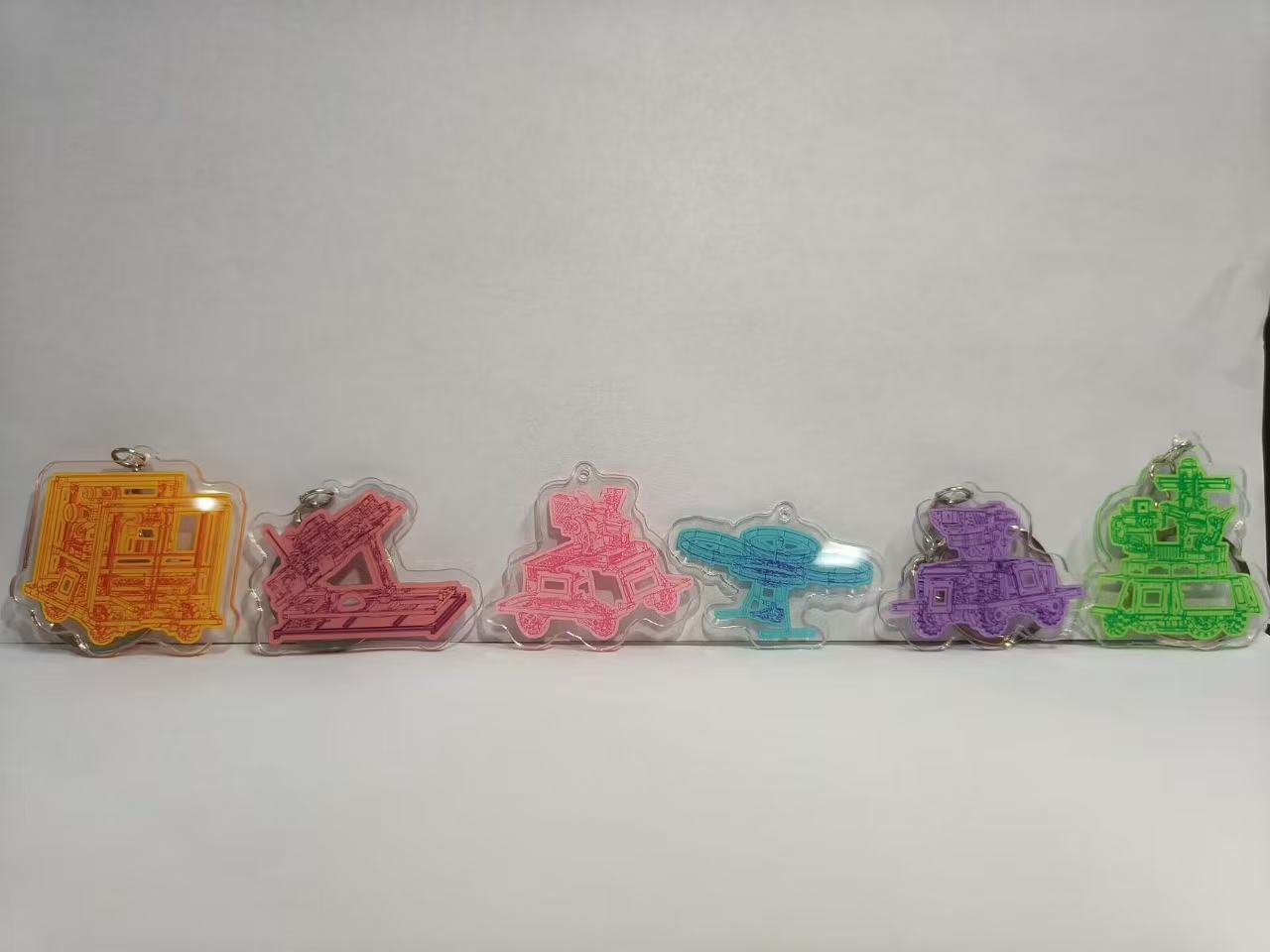 钥匙扣共六款,颜色各异,款式新颖。