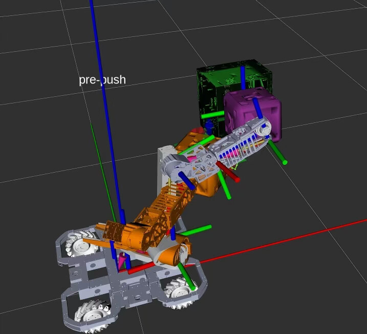 将规划分成两步:先规划到预推入位姿,再规划矿石的推入路径