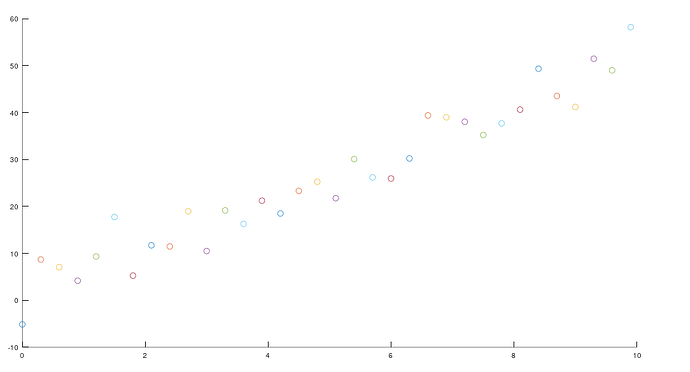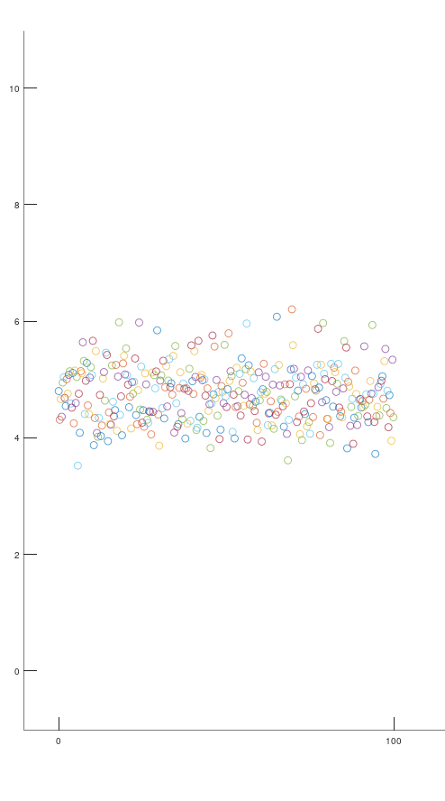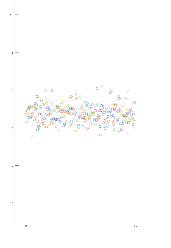 当我们加入了噪声,我们发现我们的系统变得更加的混乱。从一个相对稳定的一条线,变为混乱的世界。