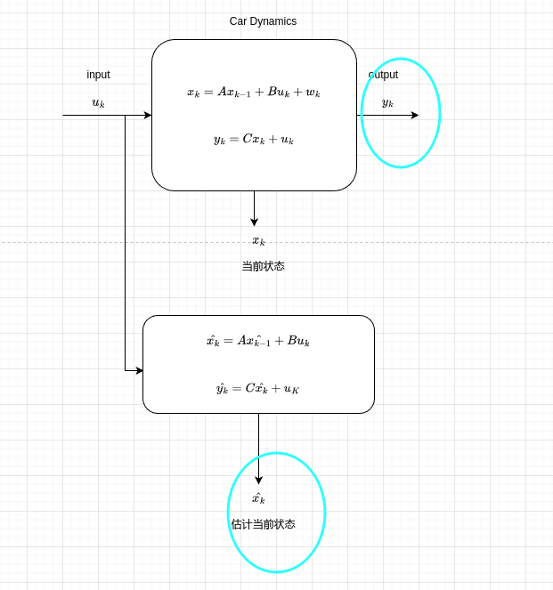 xk+1^=Axk^+Buk+K(yk−yk^)\hat{x_{k+1}} = A\hat{x_k} + Bu_k + K(y_k- \hat{y_k})