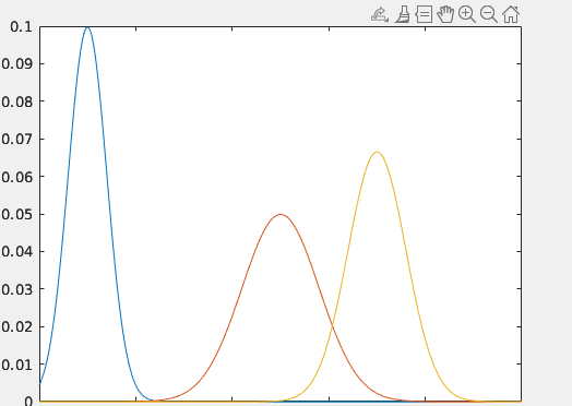 该图纵轴为该状态出现的概率,横轴为状态。当我们拥有了上一个时间的估计状态,我们可以吧上一个时间的状态代入状态方程xk^=xk−1^+Buk+wk\hat{x_k} = \hat{x_{k -1}} + Bu_k + w_k得出当前时刻的估计状态。由于误差是会随时间累积,这就代表这当时时间的高斯分布的方差会更加大。如下图。