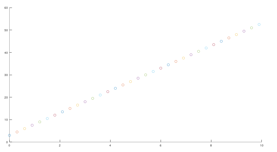 这是因为什么呢,因为在计算机的世界中,一切都是离散的,不是连续的,不管是计算机还是传感器它们计算数据都是在时钟周期的影响下驱动的,时钟每运行一次,程序就会运行一次,它并非想理想状态下是一个由一条线构成的连续的状态,而是由一个又一个小点构成的离散状态。