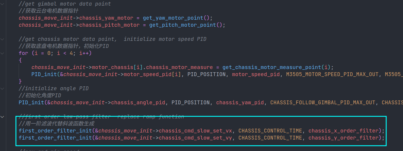 但是,之前的我作为一名小白,我甚至连滤波到底是什么我都不知道。我第一提出这个问题“什么是滤波,它有什么用”,我记得是我在阅读大疆robotMaster官方代码时提出了这个问题我记得当时的代码是这样的