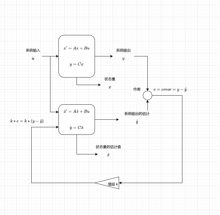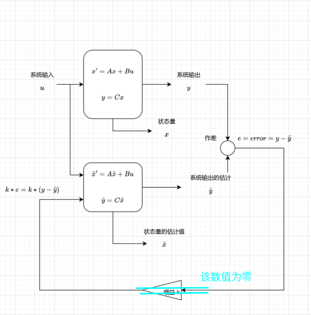 x′−x^′=A(x−x^)+Bu−Bu−K(y−y^)x’- \hat{x}’ = A(x - \hat{x}) + Bu - Bu - K(y - \hat{y})
