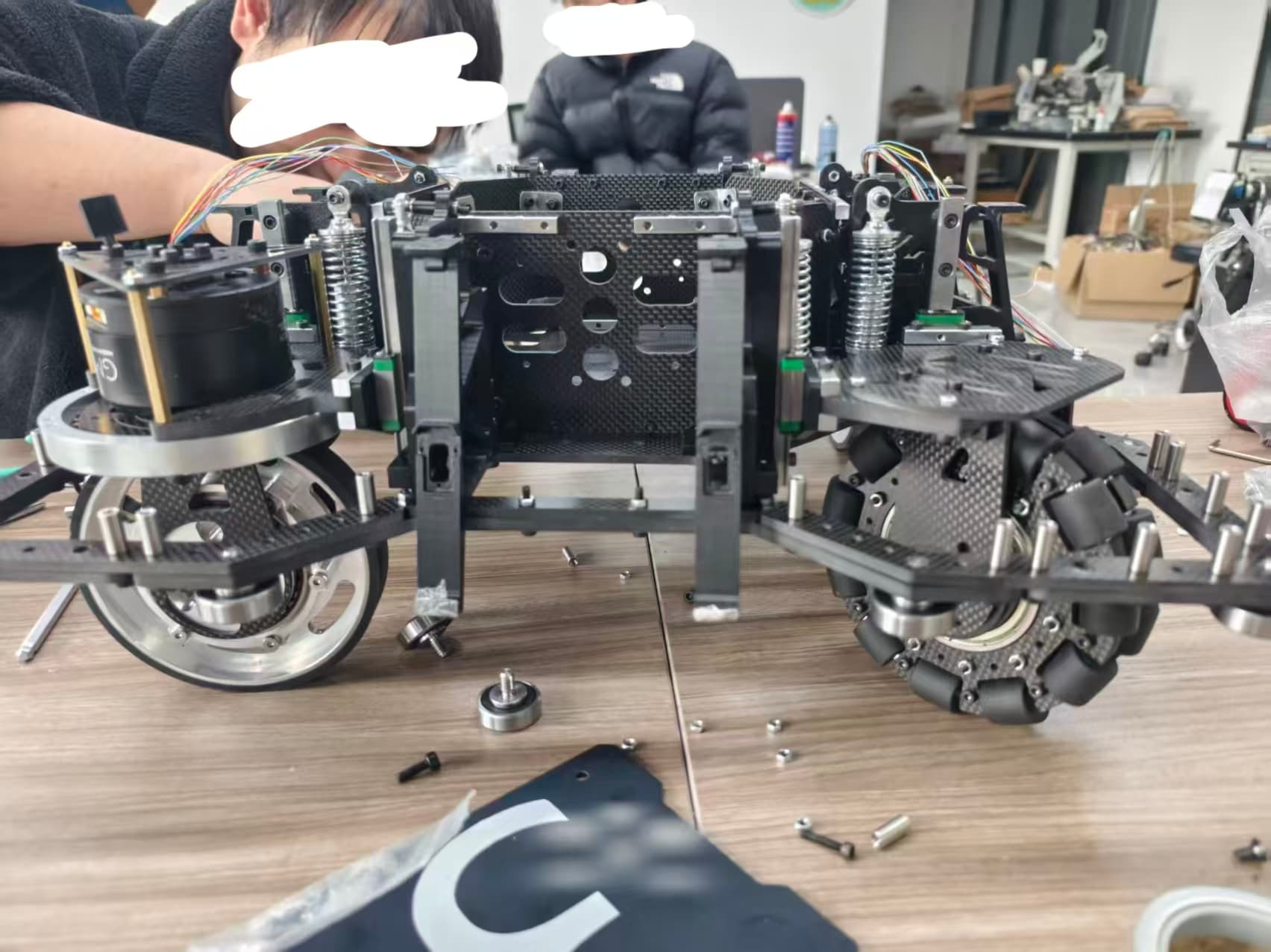 早八的铃声刚落,别人拖着倦意回宿舍,机械组和硬件组同学却拎着豆浆冲进实验室,像给机床也打了鸡血。图纸摊开,哨兵所使用材料在他们手里比课本还听话:角件对准、攻丝顺滑。汗水顺着下巴滴到铝轨,被戏称“免费切削液”。不到两小时,哨兵底盘稳稳站起,他们替自己鼓掌。早八的倦意被金属火花烧成勋章,原来知识不仅写在黑板,更被他们拧进了每一颗螺丝里。