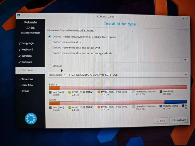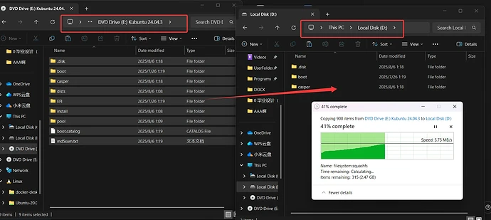 | 同硬盘分区 | ① 同一块硬盘,Win 已安装在硬盘前面 | 硬盘1:前半部分是Win的C盘,D盘等,在末尾新建分区给 Linux | 复用 Windows 已有 EFI 分区(通常 100–300MB,FAT32,/boot/efi 挂载) | 新建 /(ext4)+ swap(可选) | 安装 Linux 引导时要选现有 EFI 分区,避免覆盖 Windows 引导文件。 |
