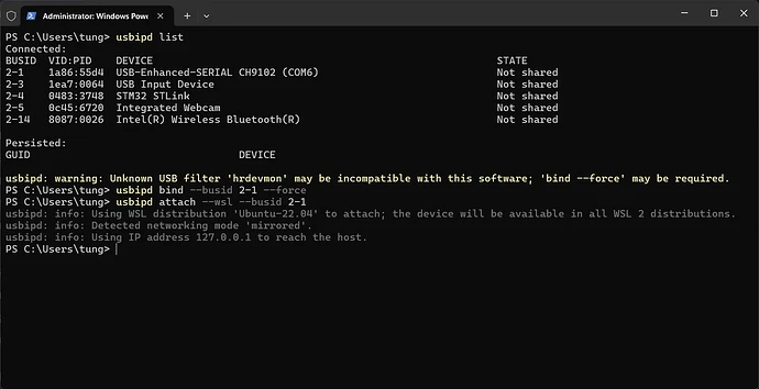 usbipd attach --wsl --busid 2-1
