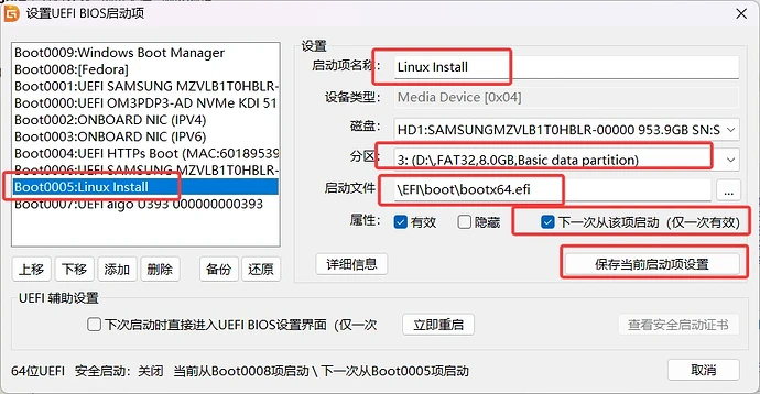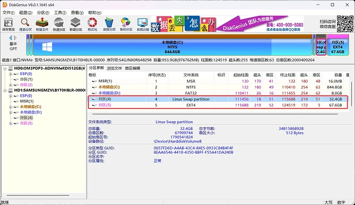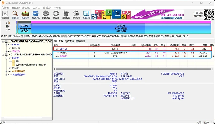 硬盘2: [EFI_Linux] [Linux Swap] [Linux /]