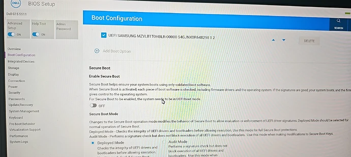 关闭安全启动Secure Boot