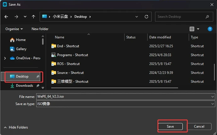 右键拖住它,拖到桌面再放手。