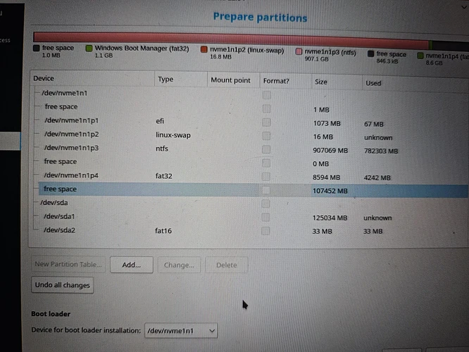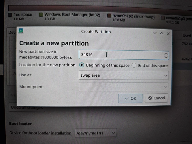 [EFI(共享)] [Win C:] [空闲区域] [Linux Swap] [Linux /]