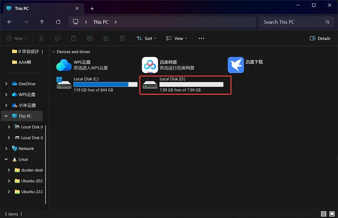 然后在wsl中的终端里查看设备。