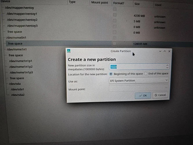 | 异硬盘独立分区 | ③ 两块硬盘,第二块硬盘全空 | 硬盘1:Windows 系统+EFI;硬盘2:完全给 Linux | 复用 硬盘1 的 EFI 分区(推荐)或者在硬盘2 新建一个 EFI 分区(双 EFI 并存适合老鸟) | 硬盘2 新建 / + swap | 如果新建 EFI,需在 BIOS/UEFI 中手动调整启动顺序;更灵活,但稍复杂。 |