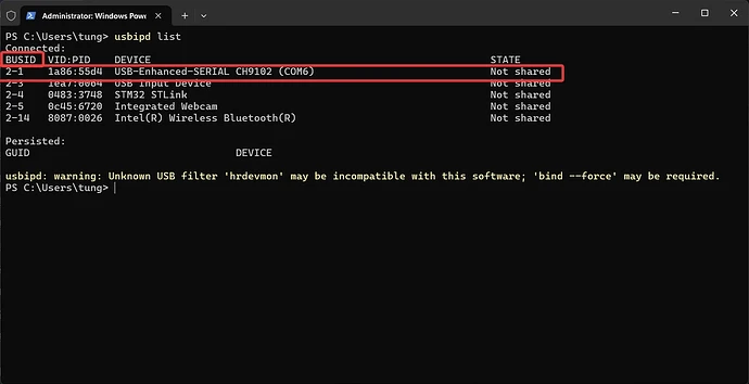 usbipd bind --busid 2-1 --force