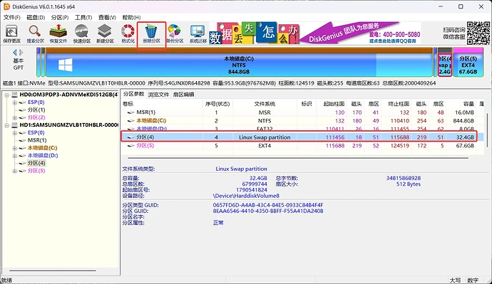 硬盘2: [E: Win存储区 [Linux Swap] [Linux /]