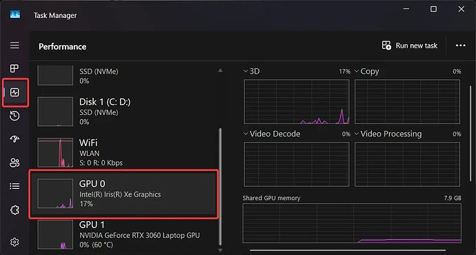 再重启后,打开任务管理器确认核显是否已经被打开了。