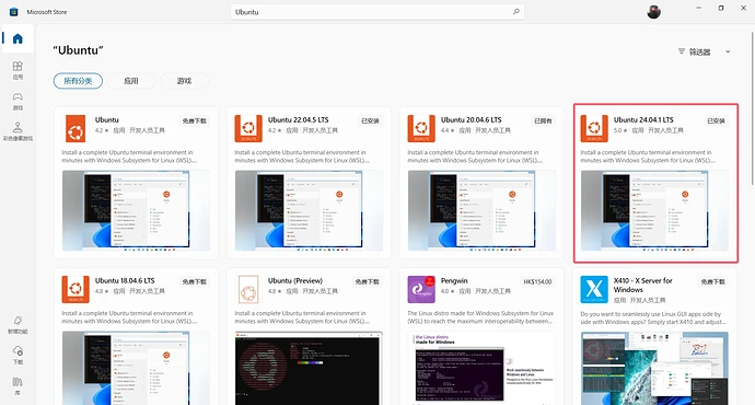 直接打开Microsoft Store搜索对应的发行版下载即可(比如Ubuntu 22.04 LTS)