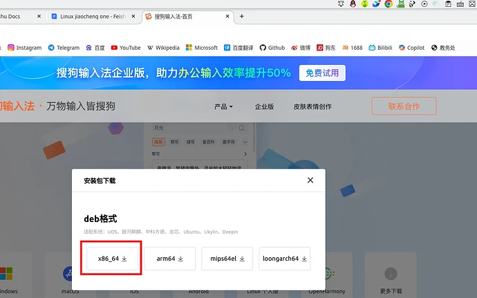 咱们这里是Ubuntu所以是Debian系的系统,所以选deb扩展名的程序包。(也就是红色框框)