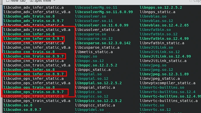 如上图,我需要将libcudnn_xxx_xxxxx.so.8.9.7和libcudnn_xxx_xxxxx.so.8和libcudnn_xxx_xxxxx.so软链接