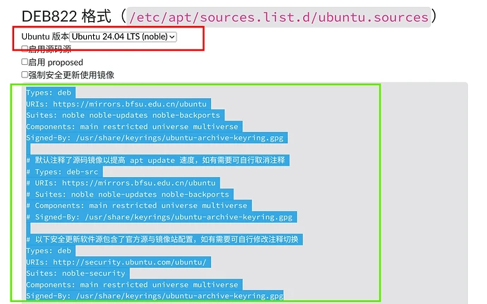 选择好Ubuntu版本后,复制下方的内容。